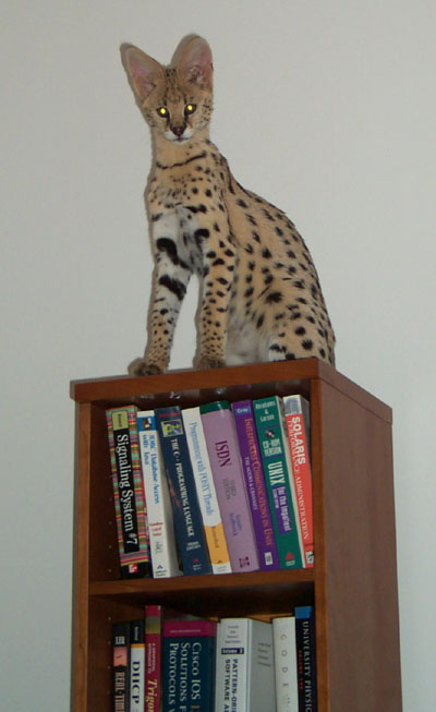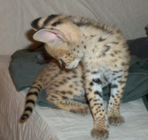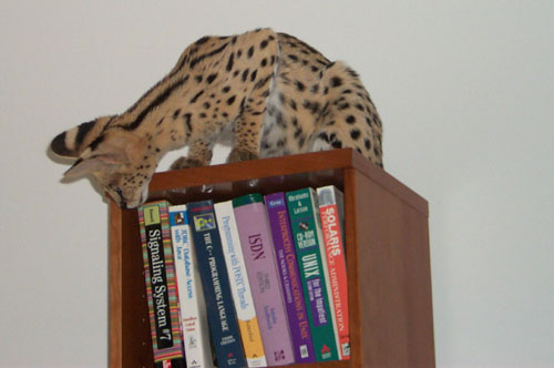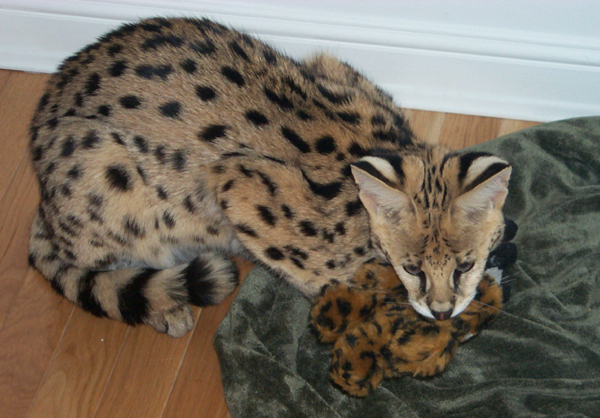 Servals are domesticated (sorta) wild cats that are most popular as exotic pets. These are some pictures of servals in the homes of others that I've found out there.
