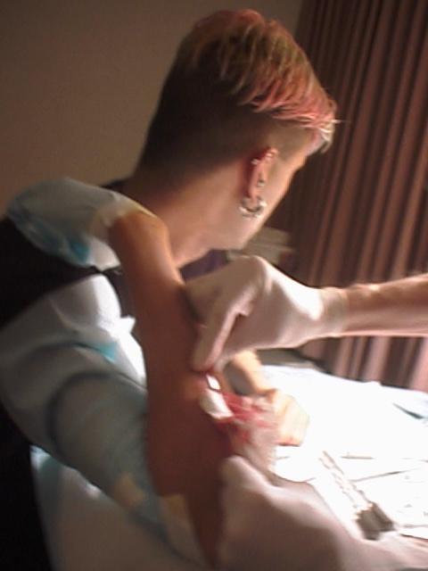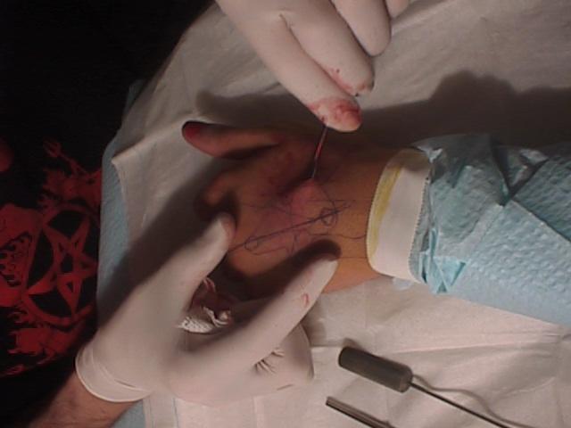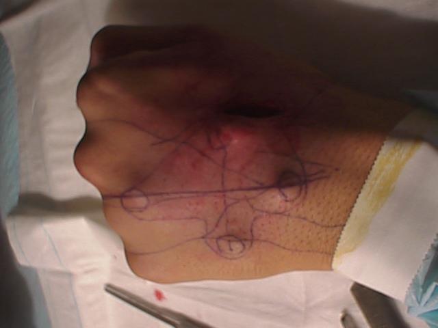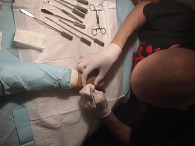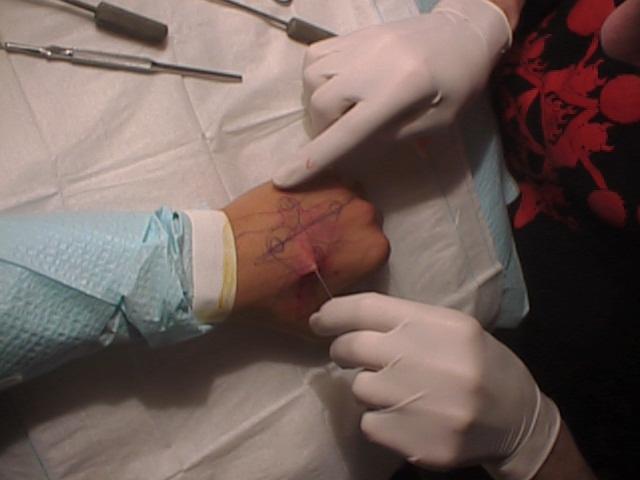forearm to insert 8 teflon hemispheres. 3 stitches were made to close